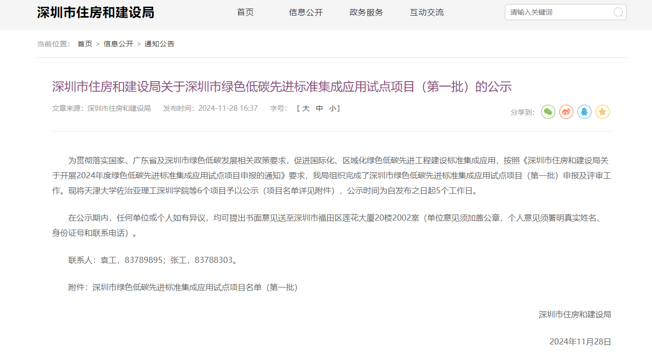 近日,深圳市住房和建設(shè)局發(fā)布了深圳市綠色低碳先進標(biāo)準(zhǔn)集成應(yīng)用試點項目(第一批)公示,中國建研院深圳分公司兩個項目成功入選,在本次公示的六個試點項目中數(shù)量處于領(lǐng)先地位,充分體現(xiàn)了中國建研院深圳分公司在大灣區(qū)綠色低碳發(fā)展領(lǐng)域的品牌影響力。